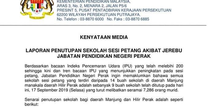 Perak Press Terkini Kenyataan Media Penutupan Sekolah Facebook