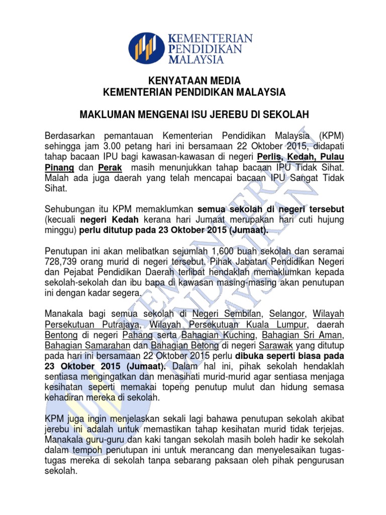 Sekolah Dibuka Esok Kecuali Di Perlis Perak Dan P Pinang