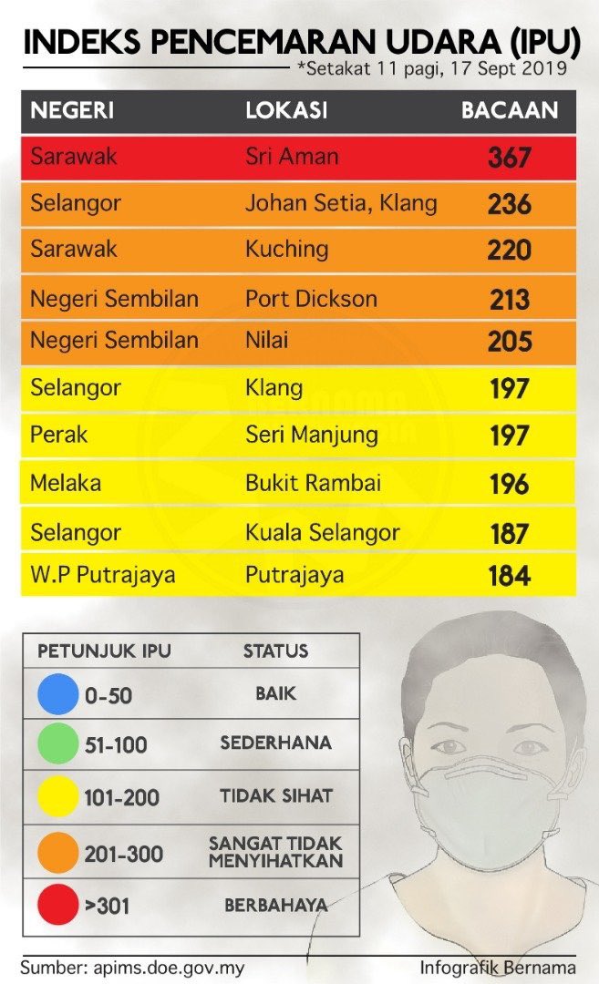 Semakan Indeks Pencemaran Udara Bacaan Ipu Terkini Jerebu