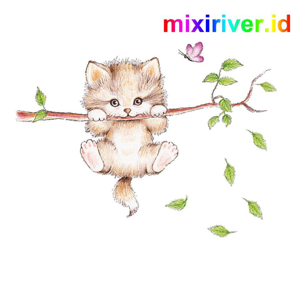 Stiker Dinding Wallpaper Desain Kartun Cabang Kucing Lucu Shopee