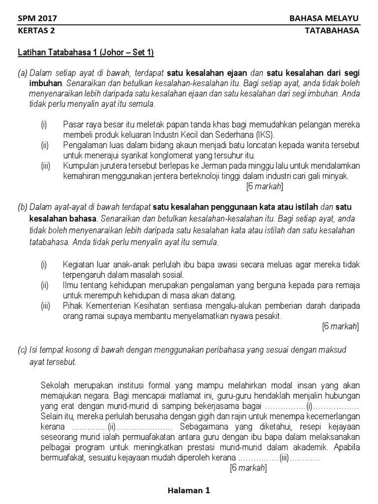 6 Koleksi Soalan Tatabahasa Percubaan Spm 2017 Se Malaysia 1