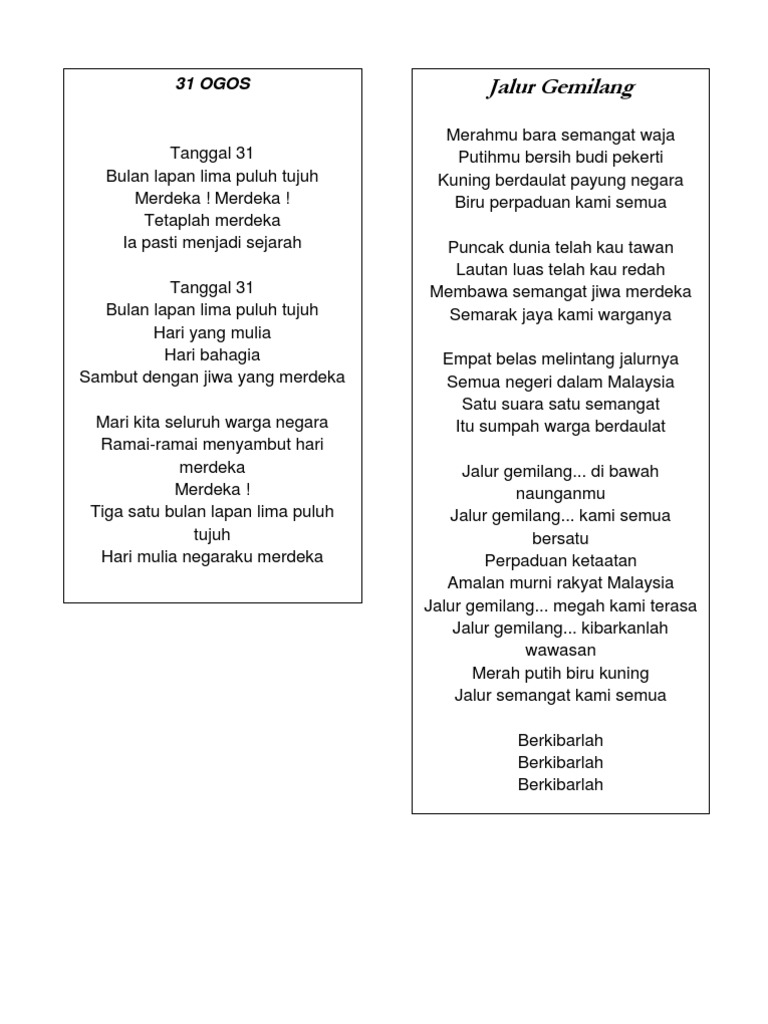 Lirik Lagu Hari Merdeka Malaysia Jalan Permata 1