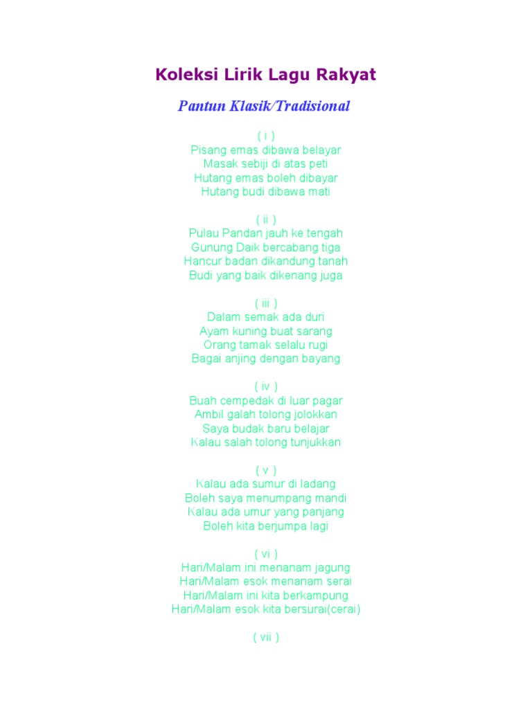 Doc Lirik Lagu Daerah 34 Prov Docx X Drive Academia Edu