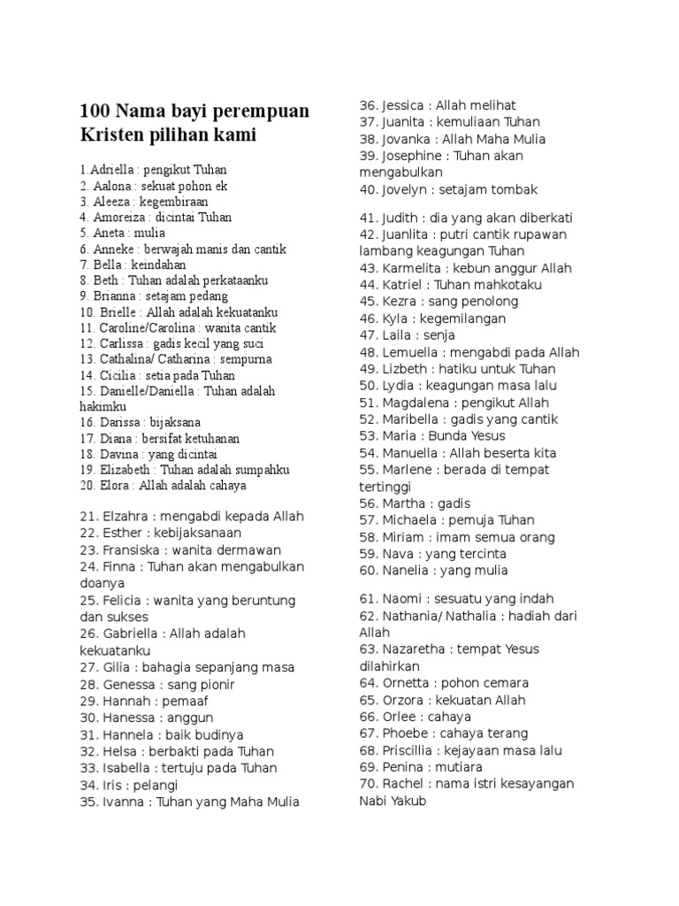 100 Nama Bayi Perempuan Kristian Yang Catholic Community