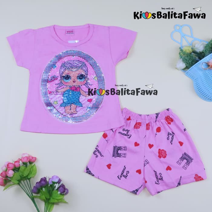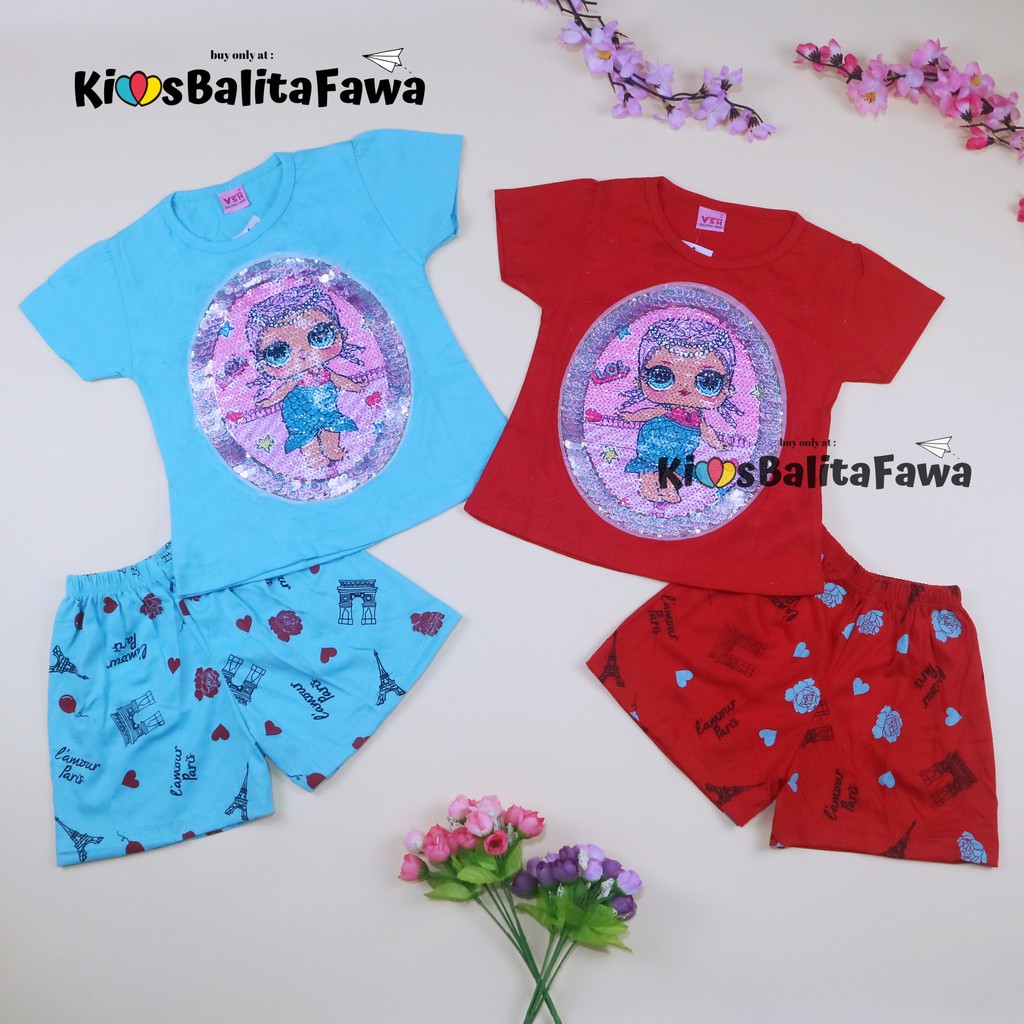 Setelan Queena Uk 5 6 Tahun High Quality Baju Lol Lengan Pendek Anak Perempuan Kaos Sisik Cewek Shopee Indonesia