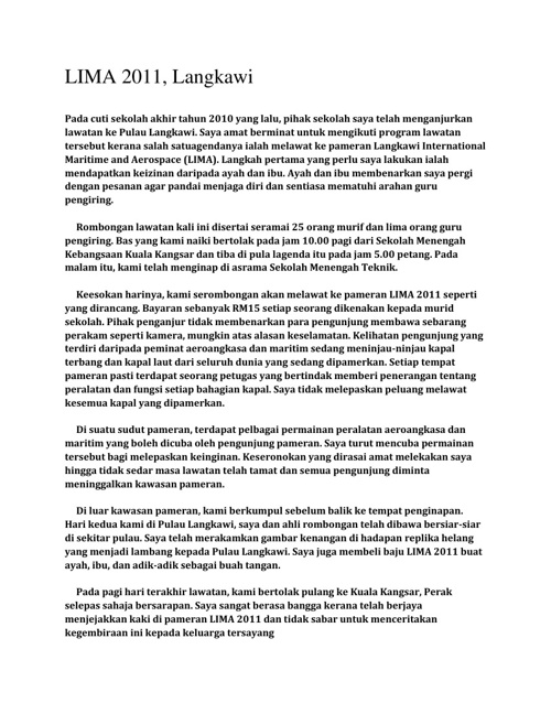 Karangan Jenis Laporan Lawatan Ke Pulau Langkawi